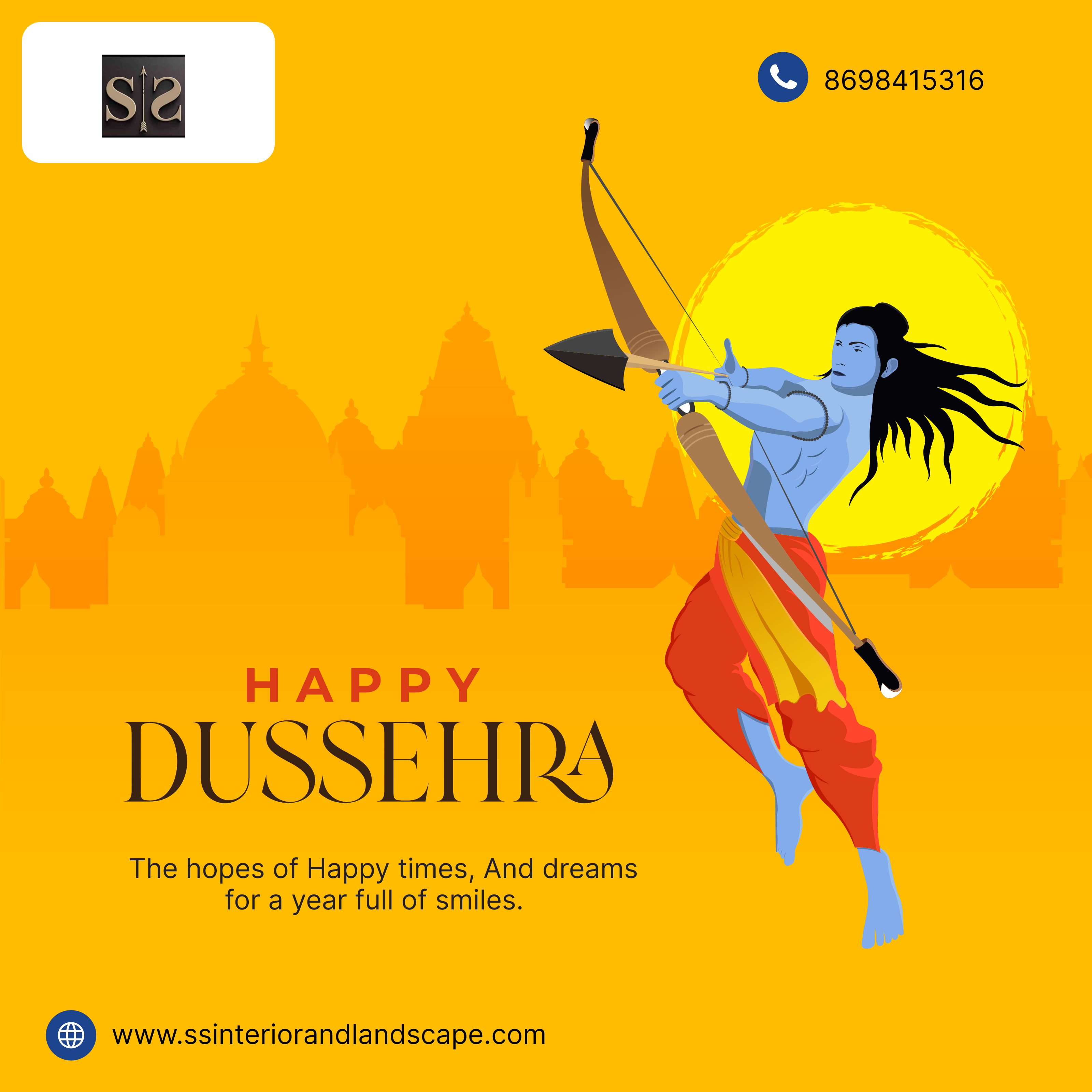 May the divine blessings of this auspicious day fill your life with happiness, peace, and success. Wishing you a joyous and prosperous Dussehra! 🪔🌟